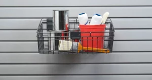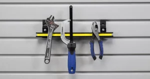 - Slatwall: Our wall panels allow you to store and easily change your organization configuration. Shelves, brackets, hooks and other accessories are attached to the wall system to hold your items. It’s completely adjustable, too, so if you need a different approach, you only need to switch where the accessories go on the wall.